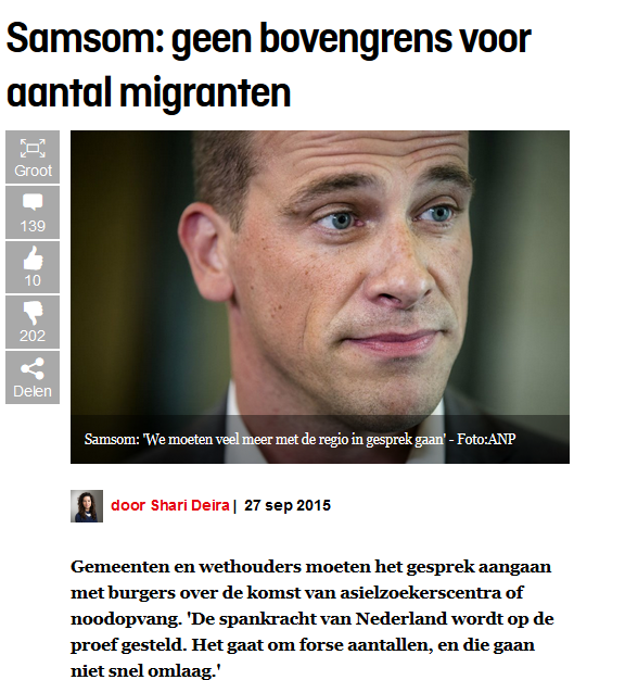 De Hongaarse premier Viktor Orbán waarschuwde onlangs dat Europeanen een minderheid op hun eigen continent worden. Maar in dit tempo kan dat nog eeuwen duren. Ten opzichte van de totale Europese bevolking - ongeveer Voor deze berekening is deze lijst van bevolkingsaantallen gebruikt (min Turkije en Rusland). 630 miljoen inwoners - vormen de Syrische vluchtelingen namelijk een kleine groep: zo’n 0,05 procent. Er wonen ongeveer evenveel mensen in de stad Utrecht. volledig artikel: https://decorrespondent.n ... ndebat/247360256-2c9daf42