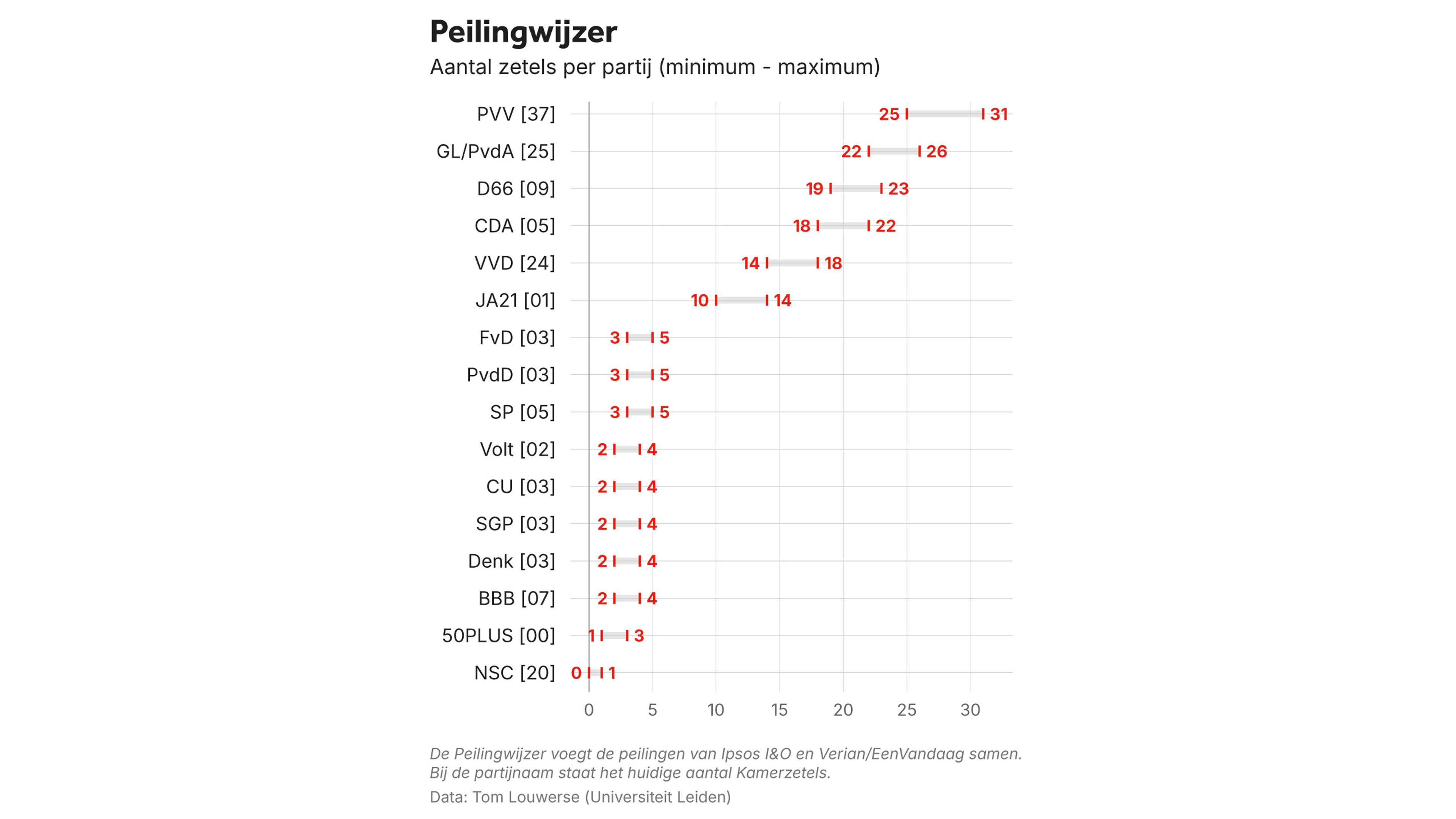 Als je de peiling van vandaag bekijkt hoeven er nog maar een paar zetels te verschuiven en GLPvdA, CDA en D66 kunnen het met z'n 3en af, of evt met CU of Volt als vierde partij. Ik krijg steeds meer hoop op een mooi middenkabinet zonder VVD.