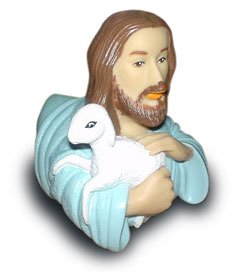 Waar moet ik precies aan denken bij een Jezus badeend? met Jesusprint erop?Nee, echt een Jezus maar dan in de vorm van een badeend.