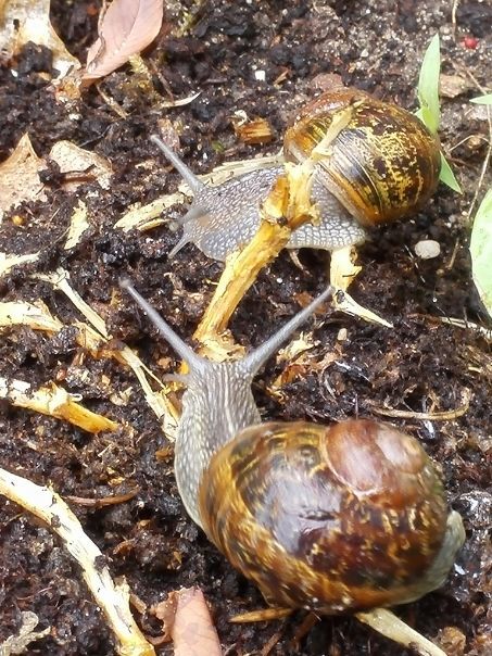 Voor 't eerst dat ik 'last' heb van slakken, ondanks dat er al jaren hosta's in de tuin staan.